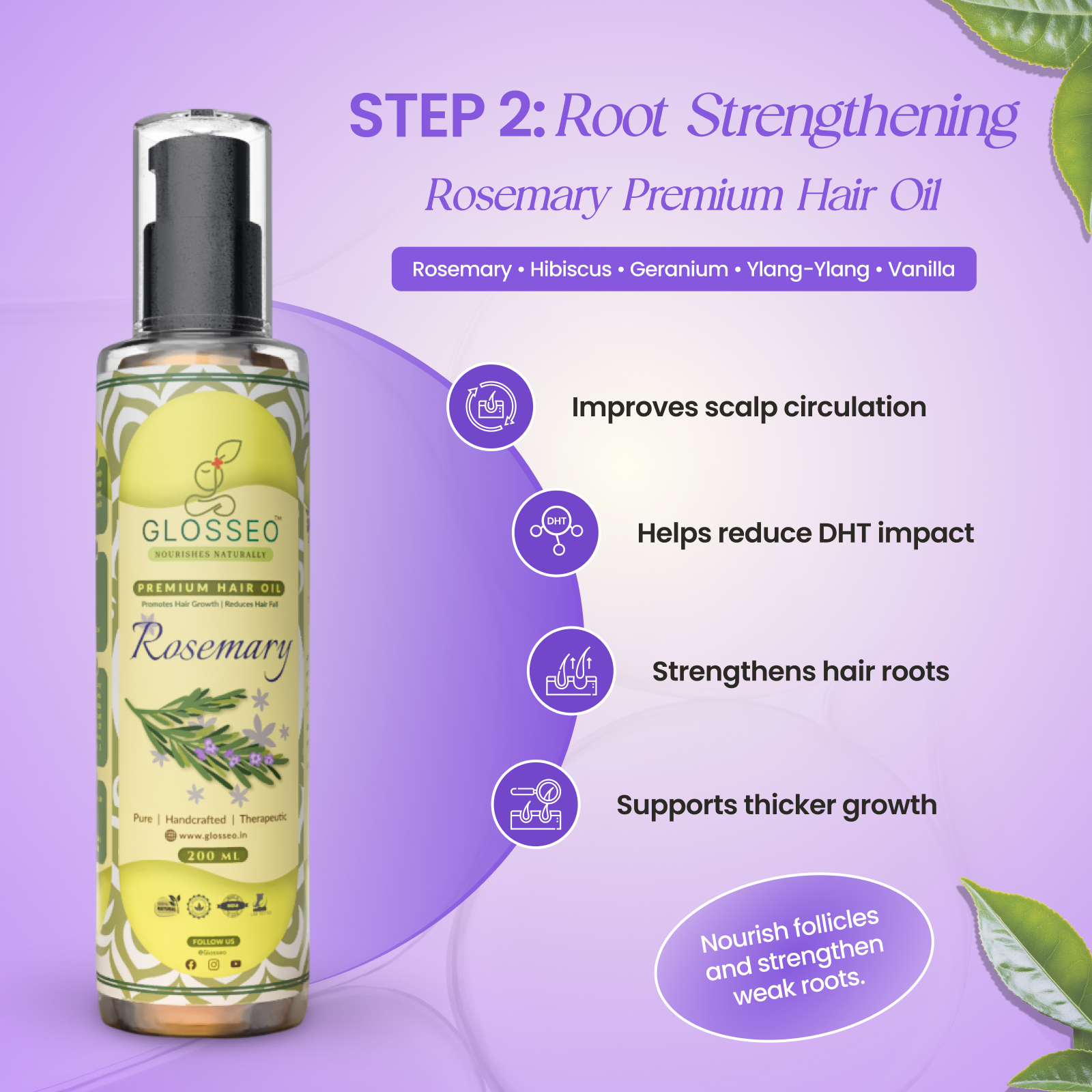 Boosts circulation, blocks DHT, strengthens roots, reduces hair fall, and promotes thicker, healthier hair with deep nourishment and natural shine.